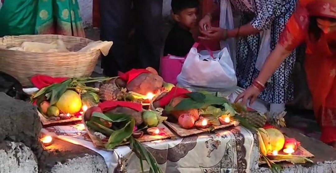 कटनी: बाबा घाट और छपरवा में उमड़ा श्रद्धा का सैलाब, अस्ताचलगामी सूर्य को दिया गया अर्घ्य